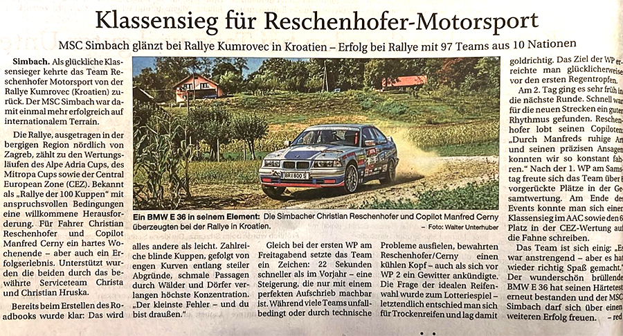 Rallye für Beifahrer Manfred. „ Ein intensives Wochenende“, sagt Reschenhofer